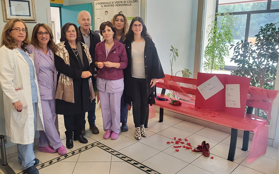 “Panchina rossa” installata nell’atrio dell’ospedale della città