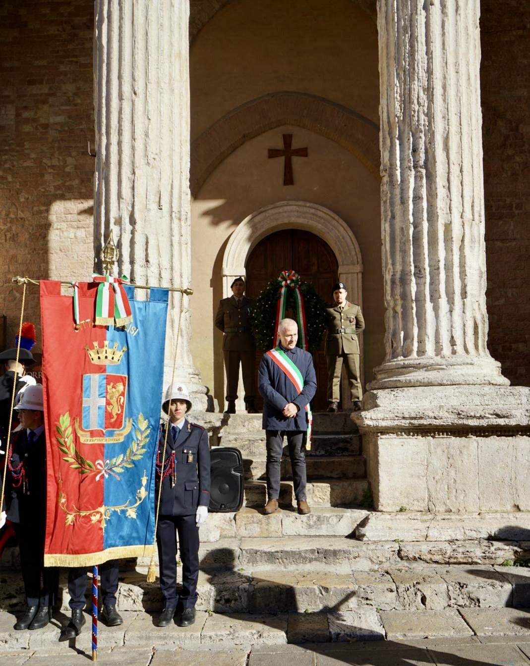 Dopo la celebrazione della messa nella chiesa di Santa Maria Sopra Minerva, il primo cittadino, Valter Stoppini, ha commemorato l’evento in un intervento in piazza del Comune. “Oggi – ha detto – rinnoviamo la responsabilità di onorare il sacrificio di quanti diedero la vita per il nostro Paese. La loro memoria non è silenziosa, ma ci impone di custodire e costruire ogni giorno la pace, valore cardine su cui si fonda la nostra Costituzione. Festeggiamo anche e soprattutto le Forze armate, che si dedicano non solo alla sicurezza interna, ma in modo cruciale anche alla ricerca della pace internazionale. Sappiamo di poter contare su di loro ed esprimiamo profonda gratitudine. Il loro compito primario di difesa della Patria si arricchisce oggi di un fondamentale impegno civile, volto a fronteggiare le calamità naturali che si abbattono sul nostro Paese. Onore ai caduti, viva l’Italia”.