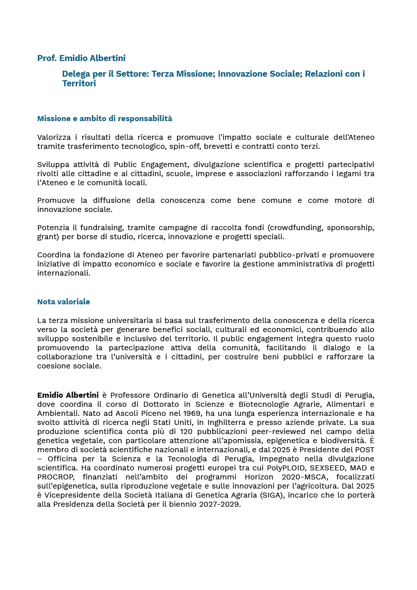 Prof. Emidio Albertini – Terza Missione; Innovazione Sociale; Relazioni con i Territori;