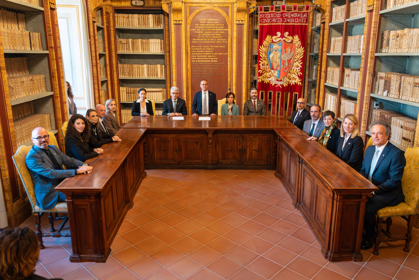 Perugia, 06/11/2025 – Stamane giovedì 6 novembre, nella cornice della Sala del Dottorato di Palazzo Murena, si è svolta la cerimonia di insediamento della nuova Giunta che affiancherà il Magnifico Rettore Prof. Massimiliano Marianelli per il sessennio 2025/2026-2030/2031.