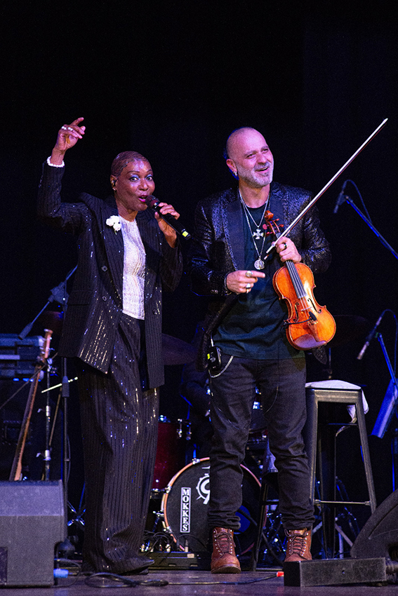 queste parole lo staff di Cambio Festival ha aperto il concerto straordinario “Amii Stewart and Alessandro Quarta 5et – The Voice & The Violin”. In scena – nell’ambito del Natale ad Assisi e applauditissimi dal folto pubblico arrivato da tutta l’Umbria – due artisti di caratura internazionale: lei una icona mondiale della musica soul e disco, e lui un violinista e compositore tra i più apprezzati della scena contemporanea, con pezzi conosciutissimi a livello italiano e internazionale. In scaletta tra gli altri omaggio a Morricone, “God bless the Child” di Billie Holiday, Libertango di Astor Piazzolla, Purple Rain di Prince e anche Etere, il quinto elemento dell’ opera The five elements che il pubblico di Cambio Festival ha potuto apprezzare quest’estate, riletto in chiave rock melodica, ma anche un grande classico natalizio come Let It Snow! Let It Snow! Let It Snow! di Frank Sinatra per augurare al pubblico del teatro assisano un buon Natale.