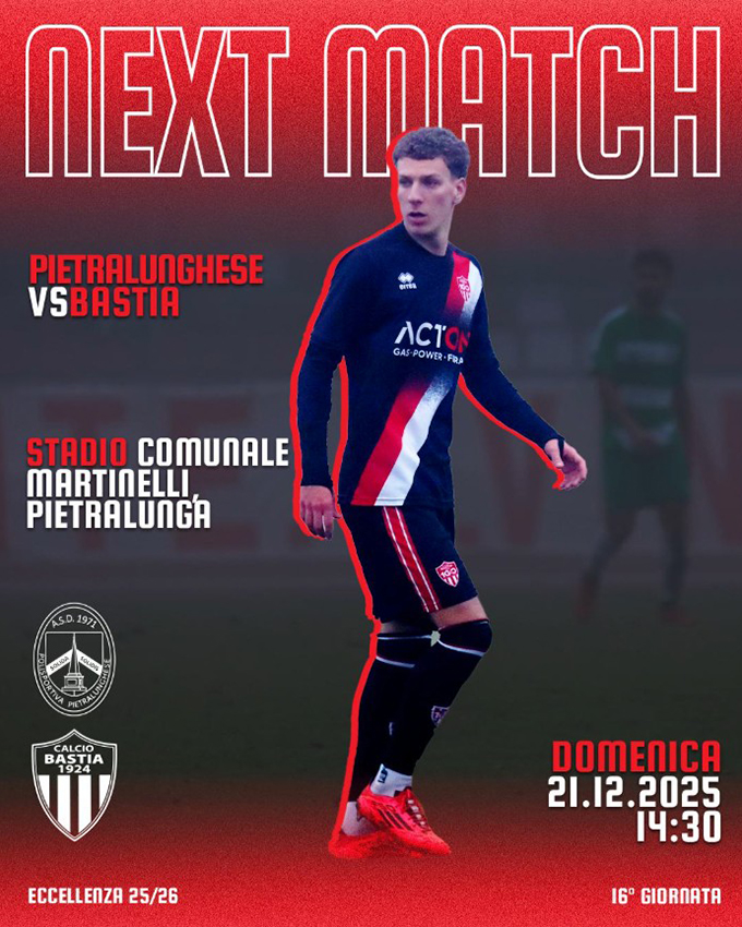 La Pietralunghese, seconda in classifica, rappresenta l’ostacolo più duro per congedarsi dal 2025. In casa loro, i rossoblù sono una squadra che concede pochissimo e che fa dell’intensità la propria arma migliore. Il Bastia, con l’infermeria piena, dovrà tirare fuori grinta e cuore.