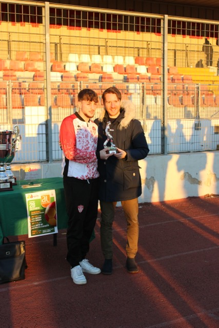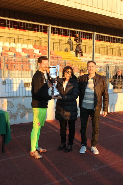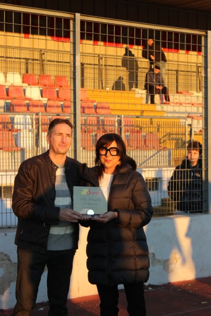 Antonietta Meschini e Leandro Lunghi premiano il capitano del Bastia Andrea Rossi