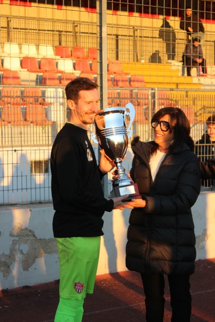 L’assessore Marcello Rosignoli premia il capitano del Costano, Filippo Mencarelli ( Costano)