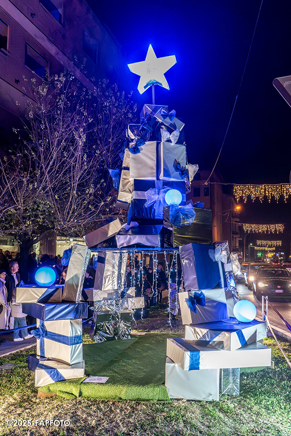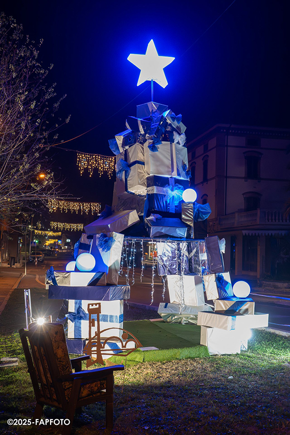 presenza di alcuni carri dell’ultima edizione del Palio, appositamente restilizzati e collocati in Piazza Mazzini per accompagnare gli alberi rionali. Una scelta che ha reso ancora più suggestivo il cuore della città durante le festività.