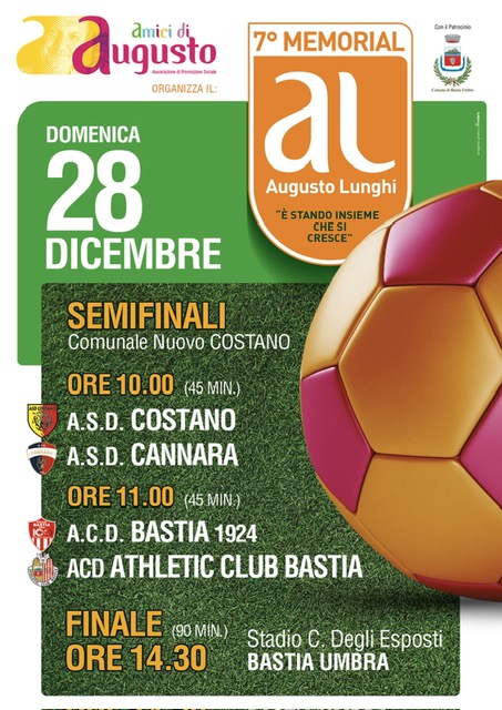 La Società Costano Calcio insieme all’Associazione AMICI DI AUGUSTO e con il Patrocinio del Comune di Bastia Umbra è lieta di Annunciare la Settima Edizione del MEMORIAL AUGUSTO LUNGHI.