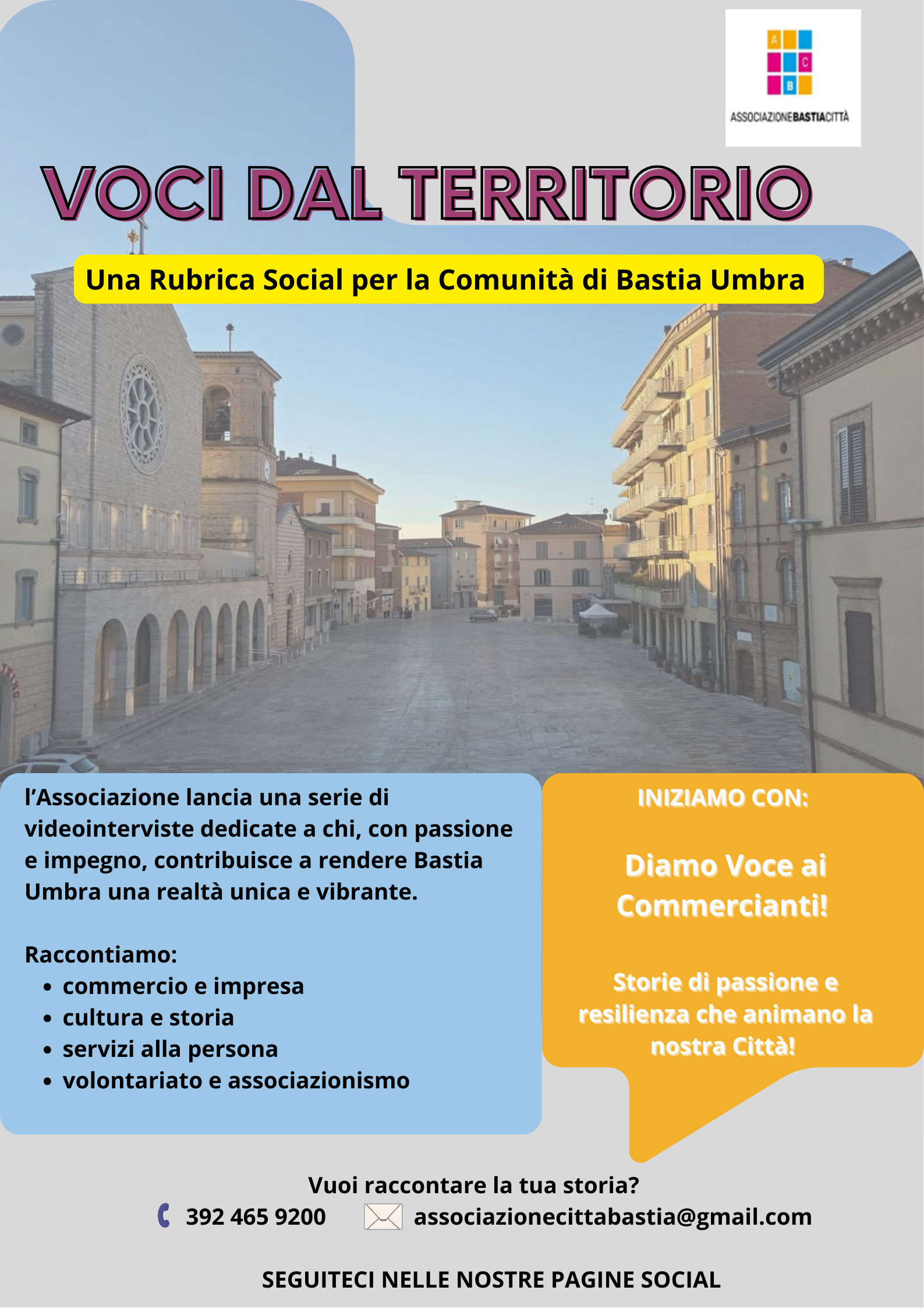 L’Associazione Bastia Città, nell’ambito delle attività previste per la promozione e valorizzazione del Territorio, è lieta di annunciare il lancio della nuova rubrica social “Voci dal Territorio”.