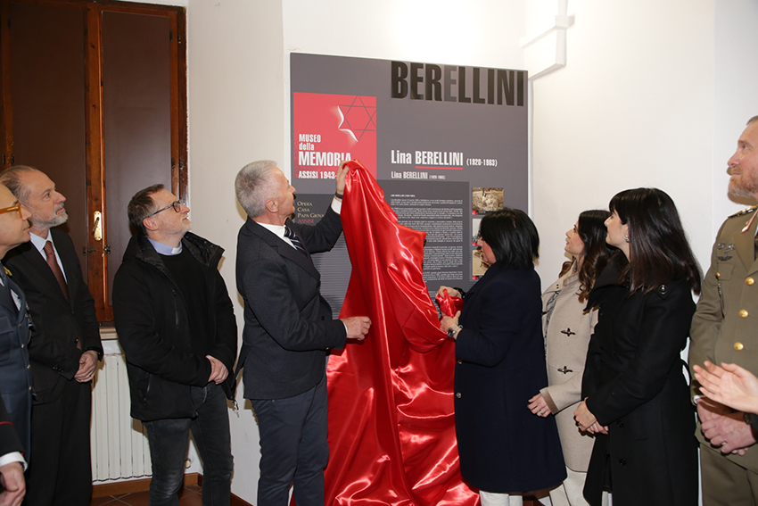 Marina Rosati – ideatrice e curatrice dello spazio espositivo che ha aperto la cerimonia svelando un pannello dedicato alla Memoria di Berellini, che racconta la sua storia e la sua figura – ha ricordato che “ormai sono diversi anni che ci ritroviamo qui in un luogo simbolo in questa stanza simbolo di San Francesco e quindi dell’accoglienza che un vescovo fece nei confronti di Francesco. Al Museo della Memoria viene ricordata l’accoglienza che un altro vescovo insieme ai suoi collaboratori fecero nei confronti degli ebrei” ed ha sottolineato che in “ogni periodo c’è una memoria che riemerge, basta solo andarla a cercare”.