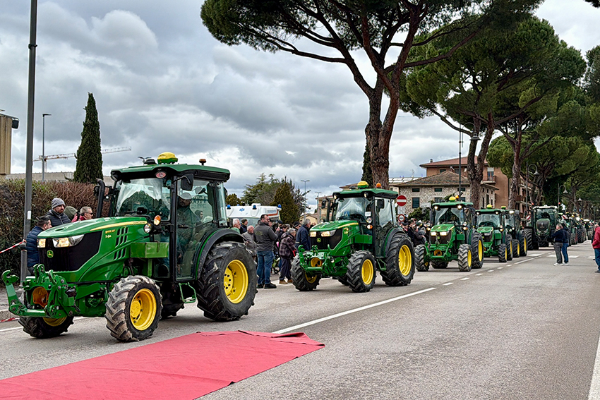 La manifestazione ha preso avvio a Santa Maria degli Angeli, dove oltre trecento macchine agricole hanno ricevuto la tradizionale benedizione prima di dare vita a una sfilata di grande bellezza e impatto emozionale. Lungo l’intero percorso, cittadini e famiglie hanno accolto con calore il passaggio del corteo – concluso a Umbriafiere dove si è tenuta una partecipata conviviale –  testimoniando un legame autentico tra comunità e mondo agricolo.