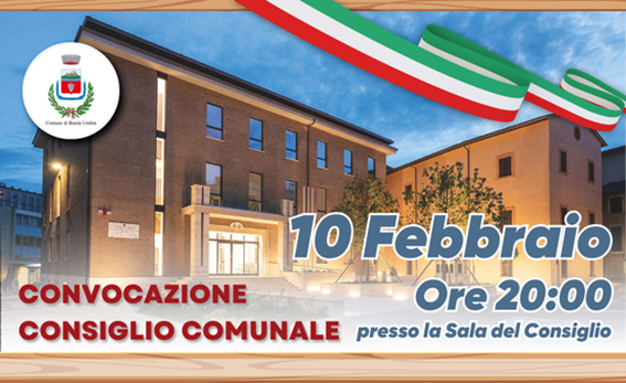 Il Consiglio Comunale di Bastia Umbra è convocato, ai sensi del vigente Regolamento di funzionamento del Consiglio, in prima convocazione per martedì 10 febbraio 2026 alle ore 20:00, presso la Sala del Consiglio Comunale – Sede Municipale.