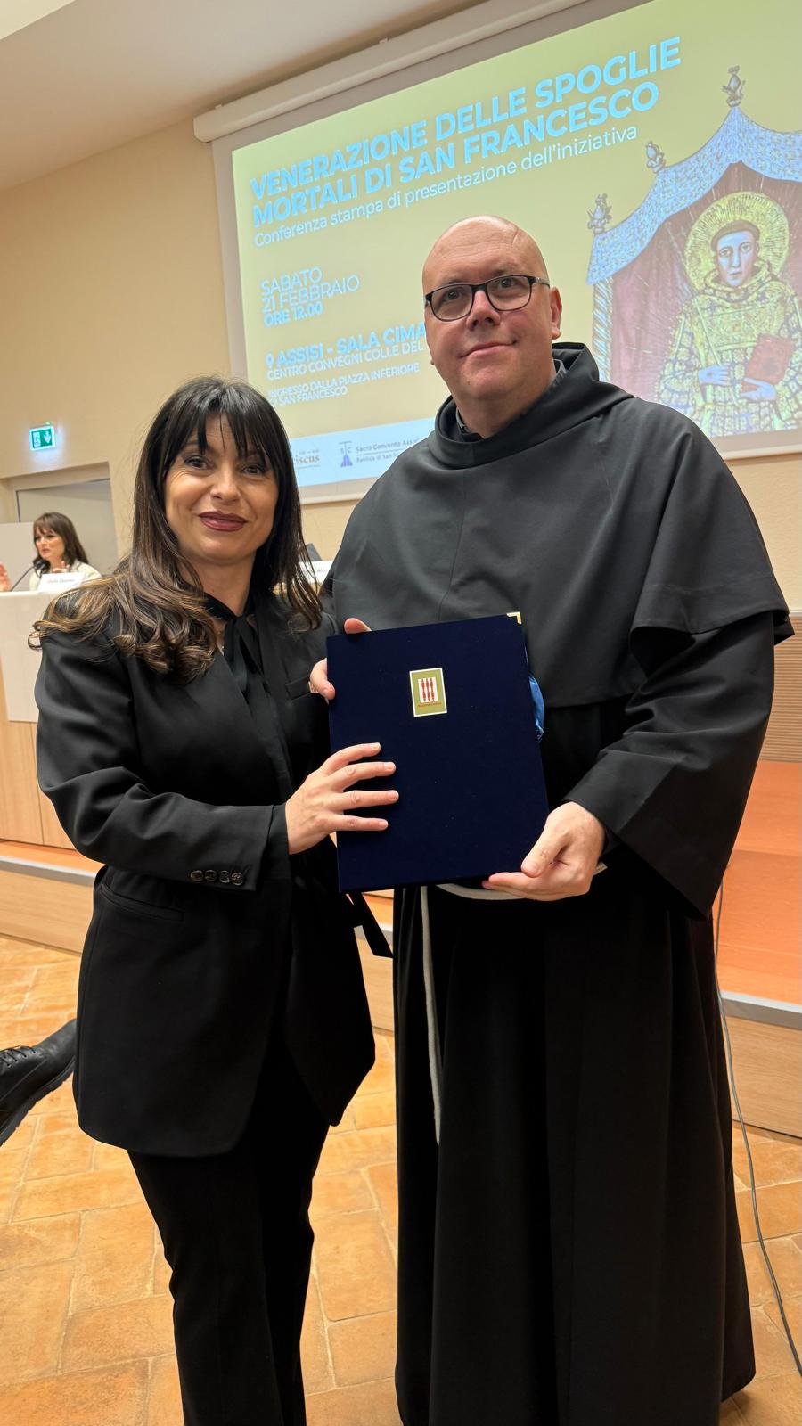 In un clima di profonda e palpabile commozione, la Presidente della Regione Umbria, Stefania Proietti, ha consegnato ufficialmente nelle mani del Custode del Sacro Convento, fra Marco Moroni, la legge regionale n. 1 del 2026, lo strumento legislativo che guiderà le celebrazioni in Umbria per l’ottocentenario della morte di San Francesco.