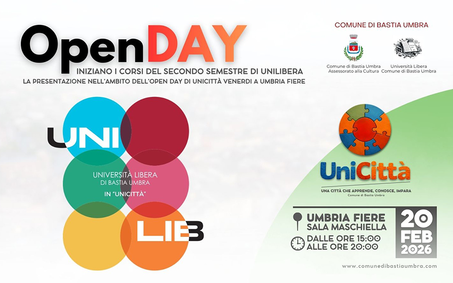 Bastia Umbra, 17/02/2026 – L’università libera del Comune di Bastia Umbra, sarà presente con il proprio open day del secondo semestre ad UniCittà che si terrà venerdì 20 al Centro Congressi di Umbria Fiere.