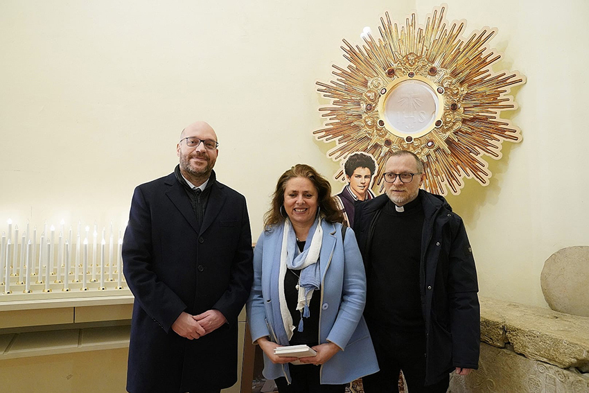 Nel corso della visita il delegato generale delle diocesi di Assisi-Nocera-Gualdo e di Foligno, don Giovanni Zampa, ha donato due libri di monsignor Domenico Sorrentino, amministratore apostolico delle due Diocesi: il primo sul giovane santo millennial, “Carlo Acutis. Sulle orme di Francesco e Chiara d’Assisi – Originali e non fotocopie”, e il secondo sulla rilettura fatta da monsignor Sorrentino sul Cantico delle Creature, partendo dalle strofe finali composte al Vescovado.