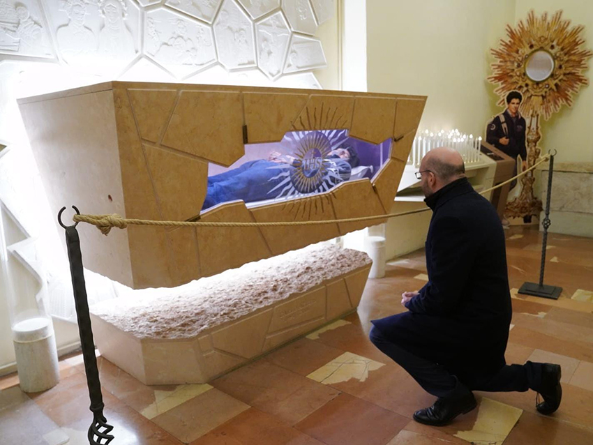 Assisi, 13/03/2026 – Seconda visita alla tomba di San Carlo Acutis per il presidente della Camera Lorenzo Fontana, che aveva citato il giovane millennial, allora beato, nel suo discorso di insediamento. Ad Assisi per l’ostensione mortali delle spoglie di San Francesco, Fontana ha voluto rendere omaggio anche a San Carlo, fermandosi a pregare di fronte alla sua tomba, nella chiesa di Santa Maria Maggiore – Santuario della Spogliazione, accolto dal Direttore dell’Ufficio comunicazioni della diocesi, Marina Rosati. “Ad Assisi, nella chiesa di Santa Maria Maggiore, una preghiera a San Carlo Acutis. Un giovane Santo che continua a parlare a tanti. A lui mi legano momenti indimenticabili della mia vita. Lo porto sempre nel cuore”, le parole diffuse su Facebook dalla terza carica dello Stato che, poi di fronte ai colleghi parlamentari a San Francesco, ha sottolineato ancora la sua devozione a San Carlo.
