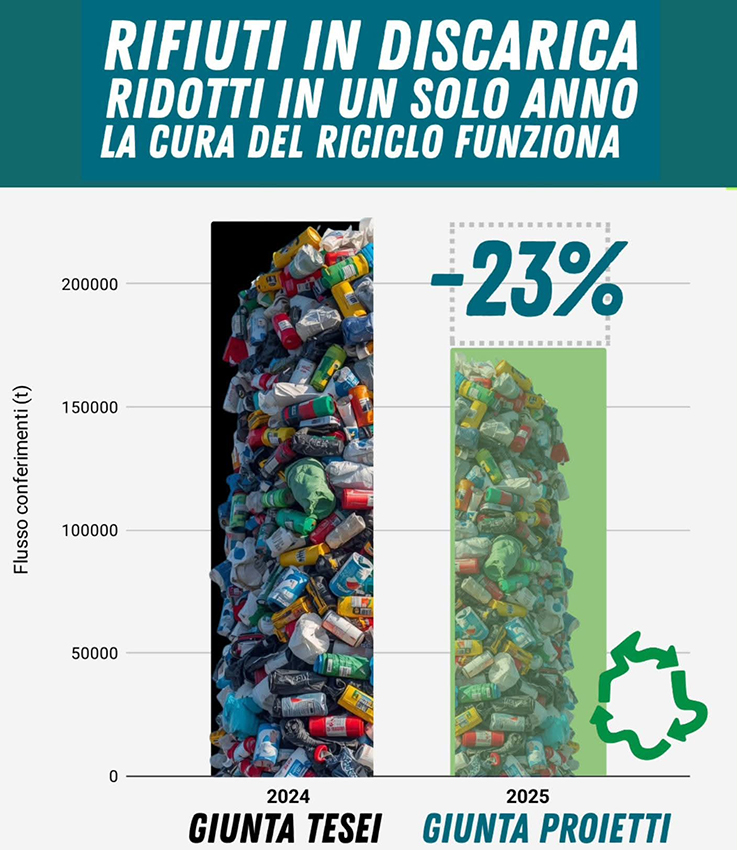 La destra indicava come soluzione nuovi impianti di incenerimento. Progetti costosi e legati a una visione del passato che avrebbe vincolato la regione per molti anni. La scelta fatta dalla maggioranza regionale è diversa. Ridurre i conferimenti in discarica. Limitare l’arrivo di rifiuti da fuori regione. Rafforzare un modello basato sul recupero dei materiali e sulla responsabilità ambientale. In questo modello anche la raccolta differenziata resta lo strumento principale per ridurre i rifiuti da smaltire e valorizzare le risorse contenute nei materiali recuperabili.