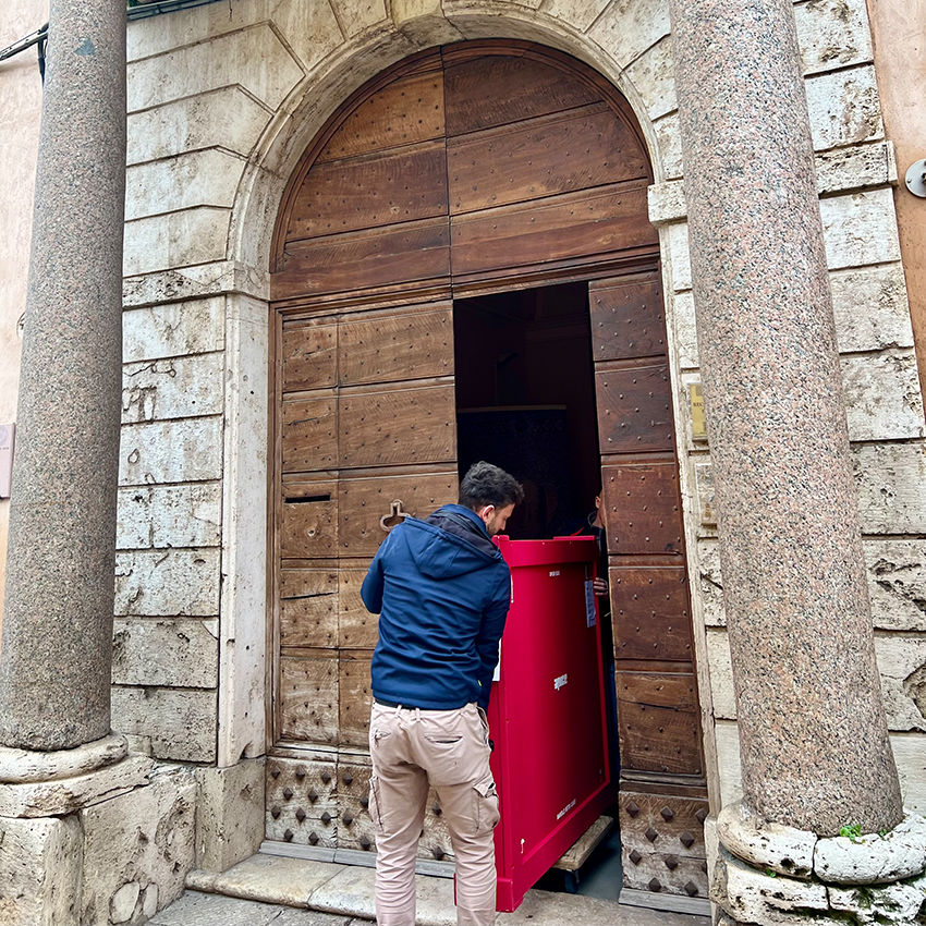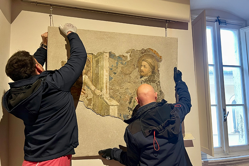 L’opera, datata 1341, è di proprietà del Comune di Assisi. Si tratta di un affresco staccato, proveniente dalla Porta urbica di San Rufino, scelto come immagine guida dell’esposizione. Le operazioni di trasferimento per il prestito sono avvenute nei giorni scorsi, in condizioni di massima sicurezza, eseguite da personale specializzato e coordinate da Giulio Proietti Bocchini, direttore dei musei civici di Assisi.