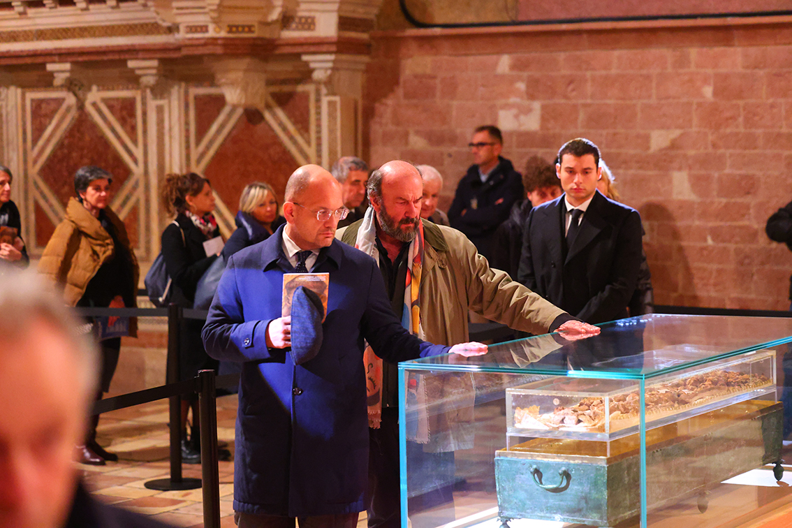 «È stato un privilegio per me e per i Senatori che sono stati oggi ad Assisi poter rendere omaggio alle spoglie di San Francesco, in questa occasione molto speciale, direi unica, di esposizione al pubblico, particolarmente valorizzata da Papa Leone con la concessione dell’indulgenza plenaria nelle chiese francescane di tutto il mondo.