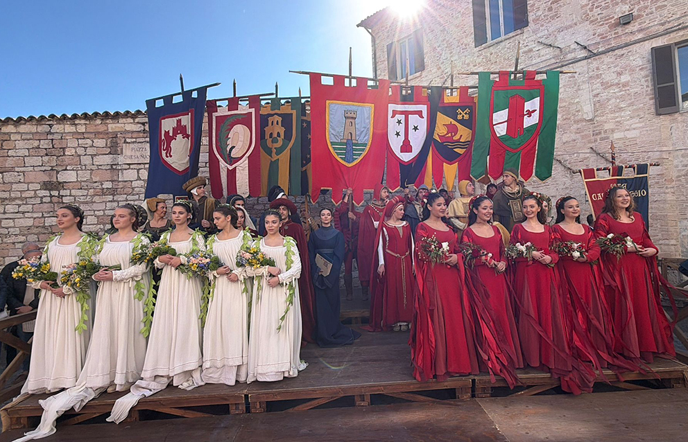 Assisi, 30/04/2026 – Il Calendimaggio pronto a entrare nel vivo: in una piazzetta della Chiesa Nuova gremita da cittadini e turisti, Magnifica Parte de Sotto e Nobilissima Parte de Sopra, nel pomeriggio di oggi, 30 aprile 2026, hanno svelato e Madonne Primavera – cinque per Parte – tra le quali sarà scelta la regina della Festa.