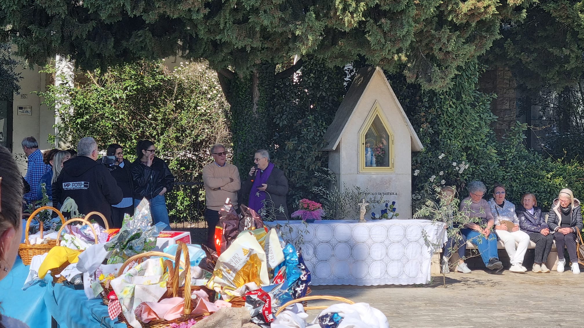È un messaggio di pace che arriva dai nostri cesti, dalle nostre tovaglie, dai nostri cibi, poggiati su tavoli azzurri, piccole uova colorate per i bambini e le bambine che portano doni: sono le immagini della benedizione dei cibi pasquali in piazza a Bastiola in un sabato pomeriggio assolato in cui le persone si incontrano e aspettano quelle gocce di acqua benedetta che il sacerdote sparge sui loro cesti. È l’occasione per ricordare e rispettare antiche tradizioni che ci fanno pensare alla Pasqua come un momento di rinascita, speranza e gioia, celebrato con pensieri di pace, amore e serenità. Al termine della benedizione i sorrisi delle persone che si scambiano gli auguri hanno un senso di calore familiare e le riflessioni religiose ci ricordano la vittoria del bene e la risurrezione. È l’occasione per condividere dolcezza e ottimismo con frasi semplici o profonde. Il direttivo dell’associazione “Sé de la Bastiola … sì” augura a tutti una rinascita colma di soddisfazioni e soprattutto vissuta con la pace nel cuore e sulla Terra.