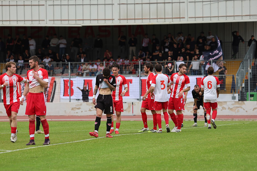 Lo Spoleto parte con il piede sull’acceleratore, approfittando subito di una clamorosa incertezza del portiere locale Belia: Kola ne approfitta e sblocca il match. Gli ospiti avrebbero l’occasione per dilagare, ma Formichetti (4’) e Balzamo (8’) falliscono il colpo del colpo del KO. Il Bastia barcolla ma reagisce grazie a una perla su punizione di Giabbecucci che vale l’1-1. La gioia dura poco: la difesa di casa si fa infilare ancora e Kola firma la sua doppietta personale con uno stacco di testa imperioso.