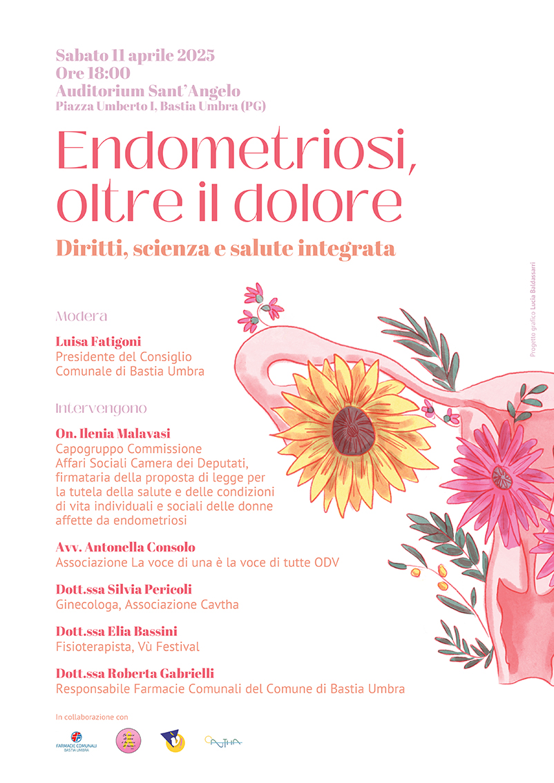 Bastia Umbra, 07/04/2026 – Rompere il silenzio, dissipare i dubbi e trasformare la consapevolezza in diritti concreti. È questo il cuore dell’iniziativa “ENDOMETRIOSI, OLTRE IL DOLORE: Diritti, Scienza e Salute Integrata”, che si terrà sabato 11 aprile alle ore 18:00 presso l’Auditorium Sant’Angelo a Bastia Umbra.