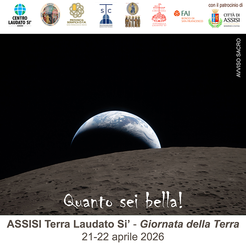 «Quanto sei bella! Non si può che dire così – ha dichiarato Antonio Caschetto, direttore del Centro Laudato Si’ di Assisi – di fronte al recente scatto che ritrae l’earthset, il tramonto della terra sull’orizzonte lunare, inviato dagli astronauti della missione Artemis II. Vedere questa immagine, in cui siamo fotografati tutti noi, in cui sono rappresentati tutti i nostri affetti, la nostra storia, i nostri pensieri e progetti, commuove il cuore. E ci fa riflettere, ancora di più in questa festa della mamma Terra, quanto sia piccola la nostra casa comune, quanto fragile e quanto preziosa, e quante volte la offendiamo con la nostra violenza e con le nostre assurde guerre. Ci auguriamo che, da Assisi, questa festa ci faccia riscoprire il senso dell’armonia».