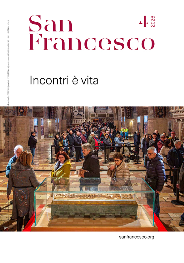 Assisi, 03/04/2026 – A pochi giorni dalla Pasqua è disponibile il numero di aprile del mensile San Francesco patrono d’Italia, il cui titolo è “Incontri è vita”. Dopo un approfondimento spirituale proprio sulla festa e sul tempo della Pasqua a cura del frate responsabile della liturgia della Basilica di San Francesco, fra Francesco Scialpi, OFMConv, il mensile si concentra «in una prima e – come ha dichiarato fra Giulio Cesareo, OFMConv, direttore dell’Ufficio comunicazione – “a caldo” valutazione dell’esperienza dell’ostensione pubblica e prolungata della spoglie mortali di san Francesco, appena conclusa. La chiave di lettura con cui la nostra comunità francescana sta cercando di comprendere più in profondità questo straordinario evento che ha coinvolto quasi 400.000 persone (cfr comunicato stampa sulla conclusione dell’ostensione https://www.sanfrancescopatronoditalia.it/notizie/eventi/si-conclude-oggi-la-venerazione-delle-spoglie-mortali-di-san-francesco-53835) è quella della gratitudine e dell’incontro. L’ostensione delle spoglie mortali di san Francesco non è stato un fenomeno turistico, né solo un’esperienza devozionale, né tantomeno evento unico a cui si è cercato di partecipare per dire Io c’ero. È stata piuttosto un incontro, individuale e comunitario – nella fede e nel cuore – con san Francesco e attraverso di lui con tanti altri pellegrini, francescani e non, giovani e anziani, uomini e donne… San Francesco ancora una volta, come quando camminava per le strade e i borghi del XIII secolo, continua a esercitare il suo dono e il suo carisma di costruire relazioni, di creare ponti tra le persone e di riparare i legami danneggiati dalla diffidenza, dall’odio, dalla paura e dall’indifferenza».