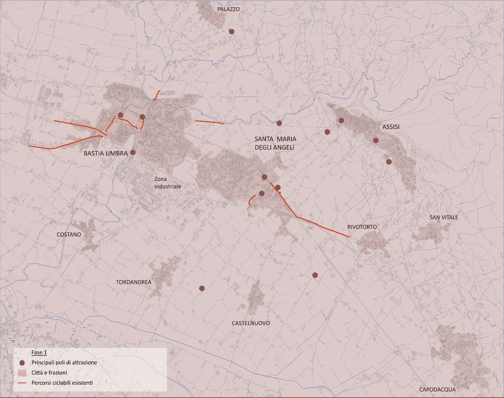 Il tratto oggetto del dibattito va letto in questa chiave. Non come intervento isolato, ma come uno dei possibili tasselli di una rete più ampia, costruita a partire dall’esistente e dai percorsi già utilizzati quotidianamente o spontaneamente nel tempo. In questo senso, anche l’intervento in corso può essere letto come un primo passo che agisce sull’esistente, mettendolo in sicurezza e rendendolo coerente con una possibile evoluzione più ampia, evitando trasformazioni invasive e difficilmente sostenibili e rafforzando la connessione tra le stazioni ferroviarie di Bastia Umbra e S. Maria degli Angeli, oggi ancora poco integrate.