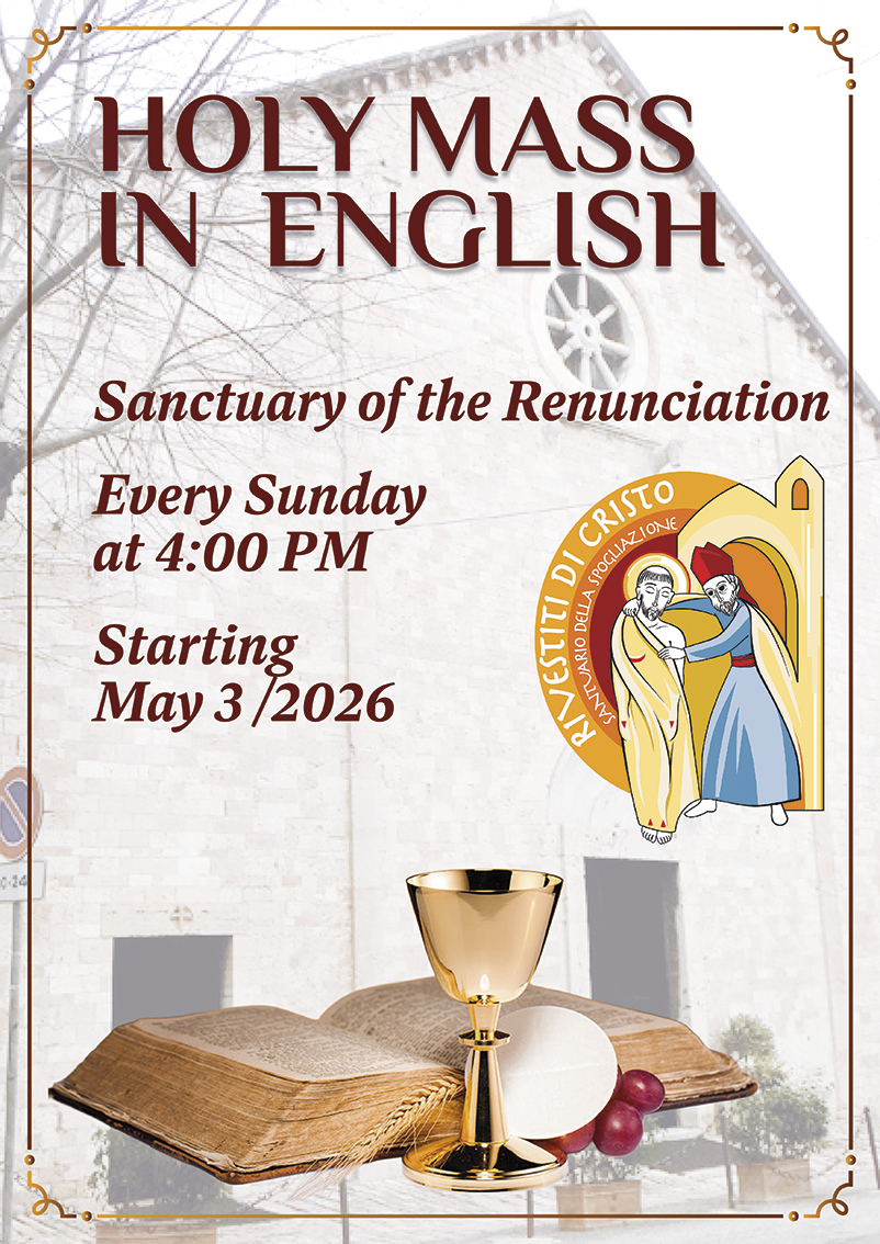 Assisi, 21/04/2026 – Si arricchisce l’offerta liturgica al Santuario della Spogliazione di Assisi: tutte le domeniche alle ore 16, nella chiesa di Santa Maria Maggiore sarà celebrata la santa messa in inglese. L’iniziativa nasce dalla volontà di curare in ogni aspetto l’accoglienza delle migliaia di pellegrini che arrivano da ogni parte del mondo, offrendo loro la possibilità di partecipare attivamente alla liturgia in una lingua accessibile e condivisa.