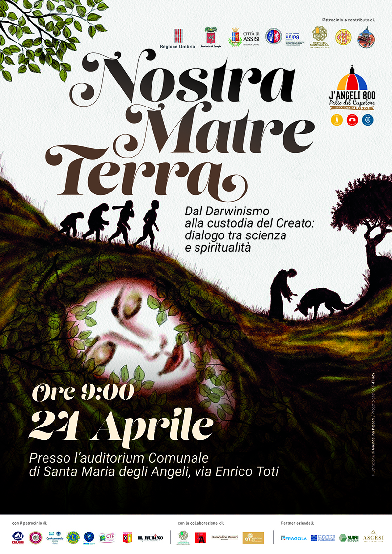 Assisi, 15/04/2026 – Venerdì 24 aprile 2026 l’Ente Palio J’Angeli 800 – APS organizza, insieme ai Rioni Fornaci, Campo e Ponte Rosso, la tavola rotonda “Nostra Matre Terra – Dal Darwinismo alla Custodia del Creato”. L’appuntamento, in programma alle ore 9 presso l’Auditorium Comunale di Santa Maria degli Angeli, sarà un confronto aperto tra pensiero scientifico e visione spirituale per riflettere sul rapporto tra uomo, natura e responsabilità ambientale. In particolare la tavola rotonda mette a dialogo il pensiero scientifico di Charles Darwin e il messaggio di San Francesco d’Assisi.